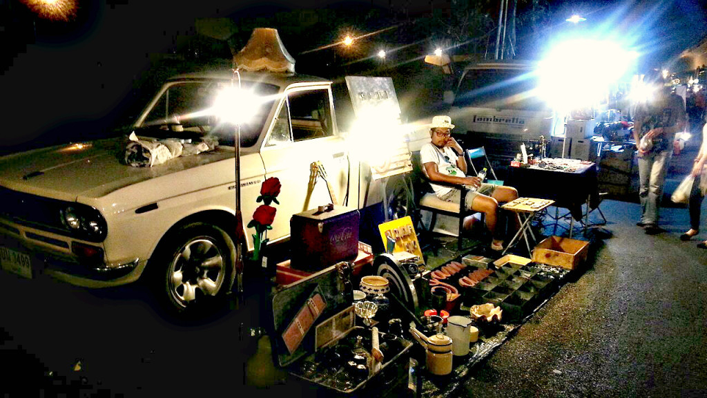 Siam Gypsy Junction Night Market is a vintage market that has a feeling much like the original Talat Rot Fai (Train Night Market) in Saphan Khwai, which has since relocated to the Srinakarin and Ratchada areas (see above). There is also a wild-west theme going on over here at Siam Gypsy Junction Night Market, with a number of saloon-style bars getting in on the action. Other memorable drinking options include a converted school bus with tables up on the roof, and a pleasant bar with an almost reggae feel set under a cabana-style thatched palm tree shelter.